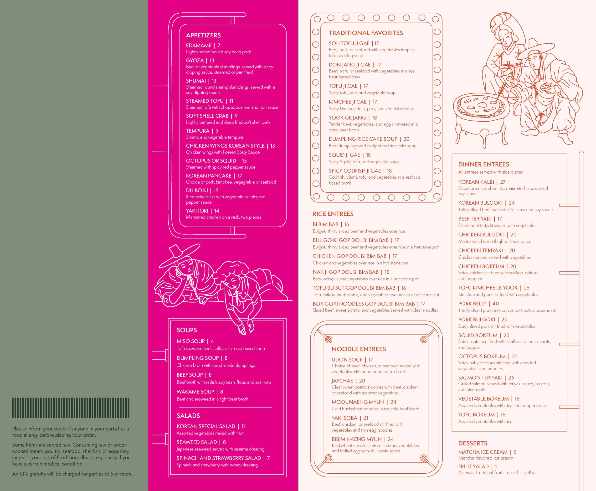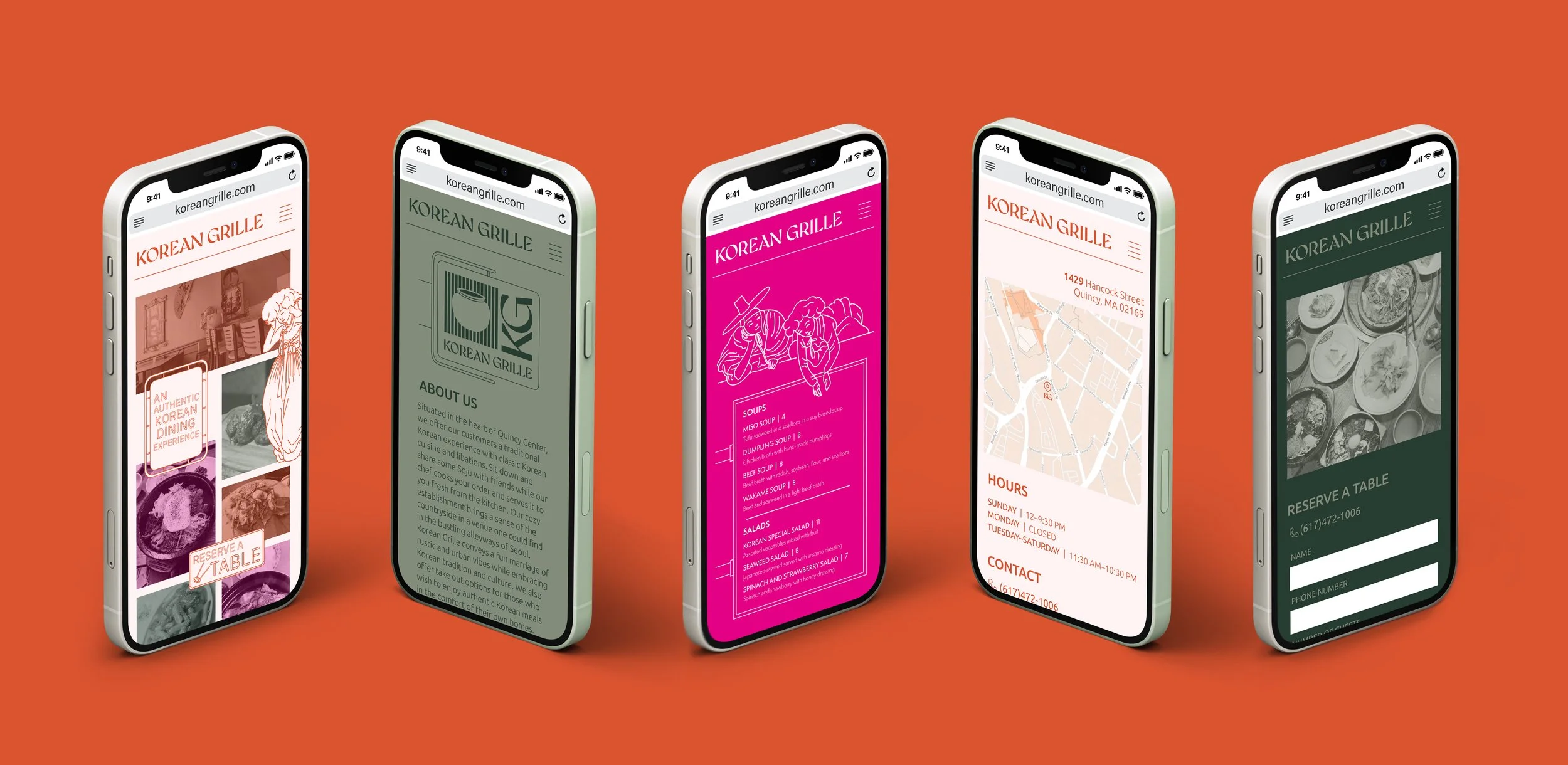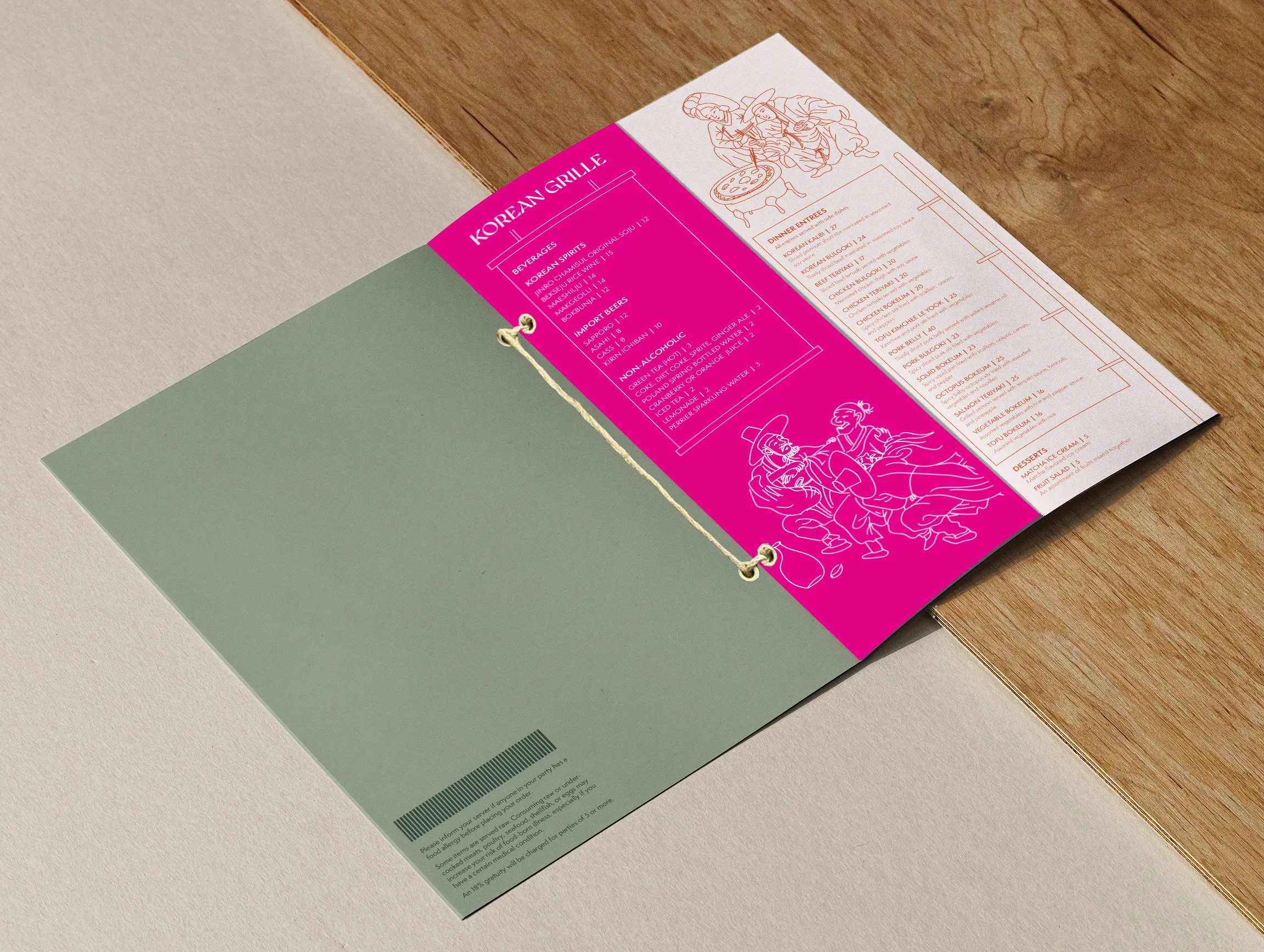 This project is an unofficial brand identity system for the restaurant Korean Grille, which is located in Quincy MA. Loved by the local community, it is a small establishment run by a Korean woman who offers a variety of fresh cooked authentic Korean dishes. The project is an exploration in developing a new logo along with updated branded collateral for the restaurant. The design system focuses on Korean tradition of past and present by bringing together the art of historic Korean paintings and the neon signs and banners that litter the busy alleyways of Seoul. The link between old and new is preserved for a sense of tradition passed on through generations, which speaks to the authentic nature of Korean Grille’s food.